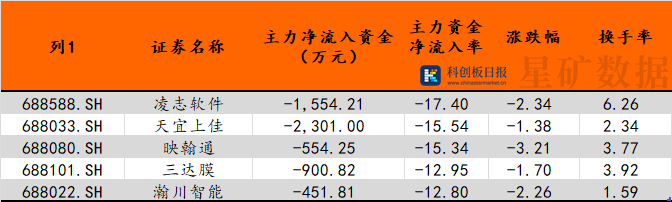数据|科创板主力资金净流出92股 凌志软件流出率最高