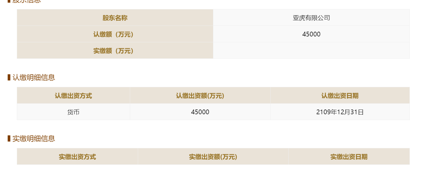 不过财联社记者查询国家企业信用信息公示系统发现,亚虎聚合生态两位股东的出资信息中,只有认缴额,而没有实缴额。