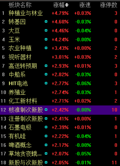 财联社3月17日讯,指数午后窄幅震荡,市场交投平淡,量能仅7000亿,个股涨多跌少,涨幅超9%个股逾70家。板块上,锂电、光伏等前期抱团板块轮动反弹,碳中和主线大幅分化,电力、水泥等板块领跌,人气龙头华银电力、中材节能等高位震荡,部分资金流入超跌的地产、农业、半导体、券商等板块,弱势市场炒新炒低,南极光等多只次新股涨停,此外,深物业、美邦服饰等低位低市值个股均晋级3连板。整体看,市场缩量震荡整理,板块轮动加快,等待方向选择。盘面上,农业、HIT电池、次新等板块涨幅居前,电力、环保、碳中和等板块跌幅居前。截至收盘,沪指跌0.03%,报收3445点;深成指涨1.22%,报收13809点;创业板指涨1.20%,报收2704点。沪股通净流出24.56亿,深股通净流入26.21亿。
