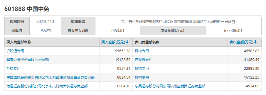 龙虎榜|中国中免今日跌停 三机构合计卖出8.45亿元