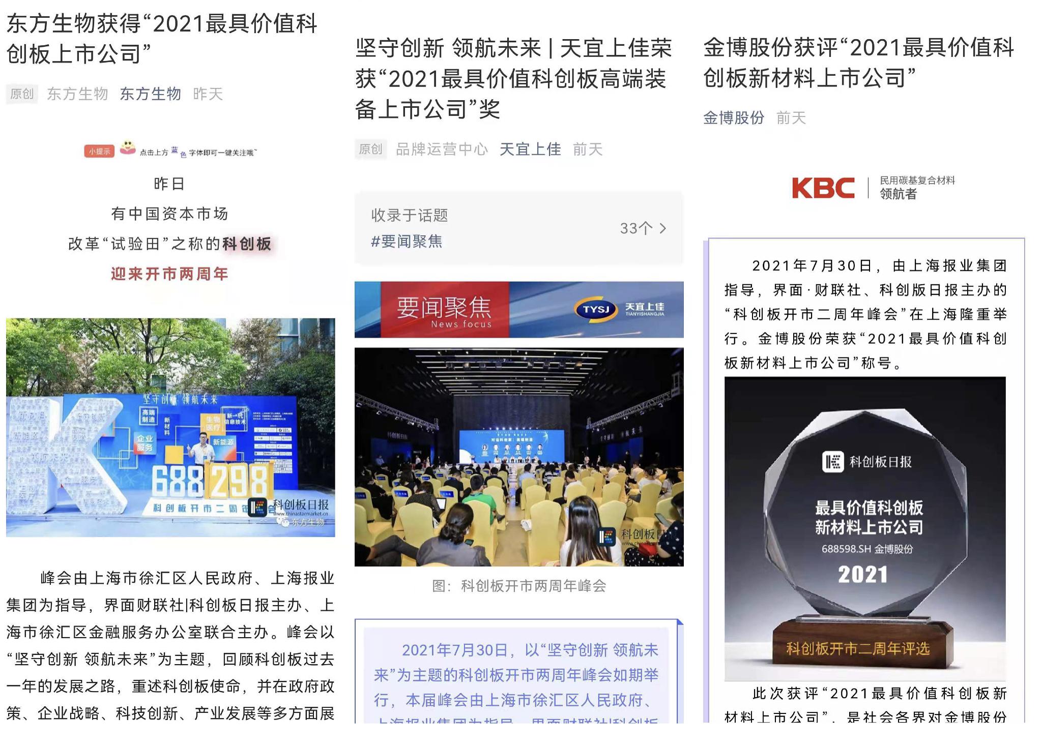 同时,聚焦细分赛道,观察科创板公司管理人员,另外推出6个相关分榜单,分别是2021最具价值科创板新一代信息技术上市公司、2021最具价值科创板生物医药上市公司、2021最具价值科创板高端装备上市公司、2021最具价值科创板新能源上市公司、2021最具价值科创板新材料上市公司、2021科创板上市公司最佳董秘。