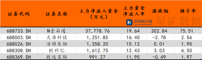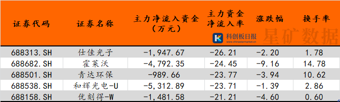 数据|科创板主力资金净流出268股 仕佳光子流出率最高