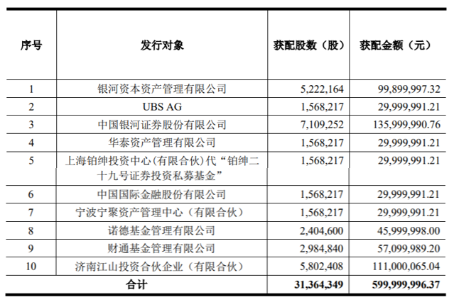 汉威科技定增结果出炉:银河证券获配1.36亿元 银河资本、UBS、中金等在列