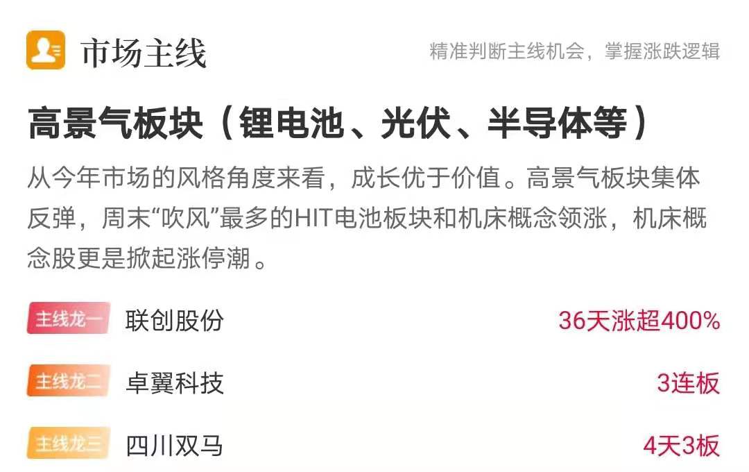 光伏、机床设备、有机硅、军工等方向大幅走强,资金依旧追捧高景气板块。光伏、HIT电池等板块联动走强,其中HIT电池概念更是领涨两市。中信证券指出,HJT电池有望成为下一代主流电池技术。机构预计2021年新增产能投放有望达10GW-15GW,2025年HIT设备市场空间有望超400亿元,5年复合增长率为80%;工业母机概念经过周末的发酵,早盘上演涨停潮。中商产业研究院预测,2025年我国数控机床产业规模将达4056亿元;军工板块连续4天走强,整机总装的中航沈飞涨停新高,上游的钛合金材料概念股宝钛股份、上游材料的高温合金概念股钢研高纳、上游的碳纤维概念股光威复材等军工景气分支的核心个股纷纷大涨。