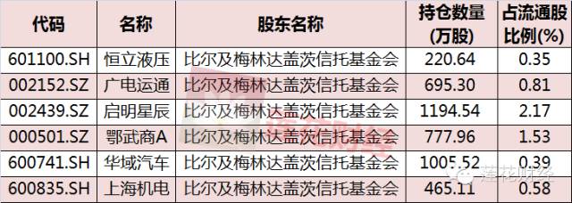 此外,2015年第四季度,比尔盖茨基金还曾现身长城汽车、恒立液压、广电运通、启明星辰、新和成、江海股份、华电国际、鄂武商A、华域汽车、上海机电等10家公司的前十大流通股东。