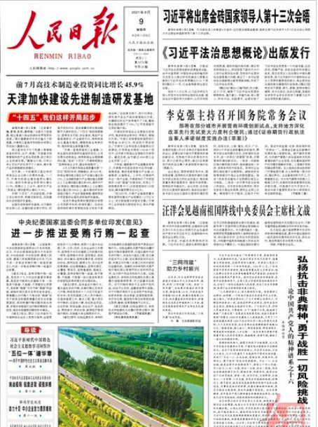 财联社9月9日电,今天《人民日报》的主要内容有: