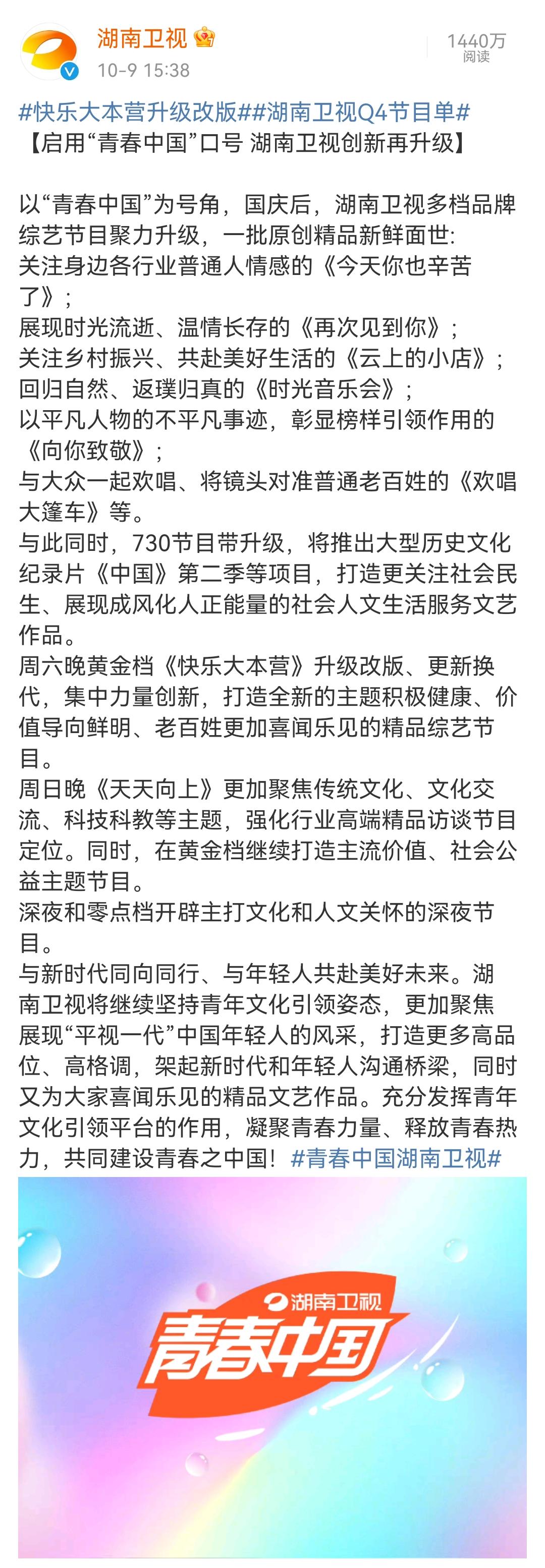 湖南卫视回应《快乐大本营》停播传闻:升级改版 打造全新的主题
