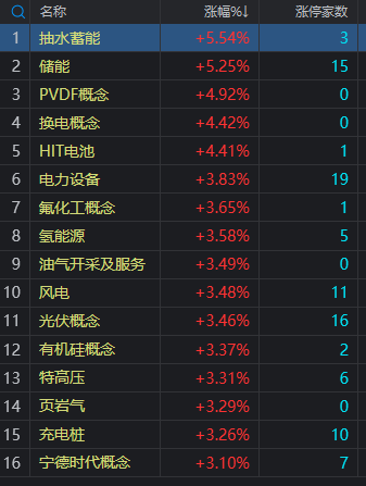 财联社10月25日电,三大指数午后涨幅扩大,沪指重回3600点上方,中证1000指数涨超1%,个股涨多跌少,沪深两市成交额再度突破万亿元。储能、光伏、风电、锂电等新能源板块全天强势,储能板块掀涨停潮,宁德时代、比亚迪创新高,磷化工、氟化工方面,创业板股清水源4天3板,湖北宜化、永太科技等热门股涨停并创历史新高。券商、保险板块午后异动拉升,长城证券涨停,民生控股3连板;国防军工、医美板块有所表现。开盘破发的两只新股中,凯尔达收涨超10%,可孚医疗仍收跌4.43%。盘面上,储能、PVDF、HIT电池、电力设备等板块涨幅前列,房地产开发、教育、北交所概念、旅游等板块跌幅居前。截止收盘,沪指涨0.76%,深成指涨0.72%,创业板指涨1.64%。北向资金全天小幅净买入8.94亿元,为连续5日净买入。
