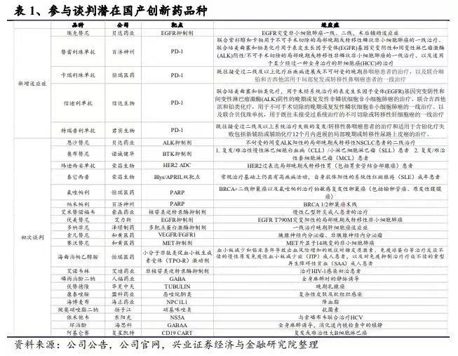 近日,兴业证券梳理本次可能参与医保谈判的潜在国产创新药品种,详情如下: