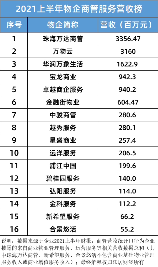 合景悠活5520万元的商管收入,需要说明的是,其统计口径未计入商业物业基础物业管理服务收入,因此,其在商管营收数据上的排名暂处于尾部。