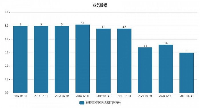 翻台率出现下滑是海底捞上市后一直面临的问题。2019年,海底捞内地门店的翻台率为4.8次/天;2020年由于疫情影响,翻台率下降到3.6次/天;今年上半年,疫情影响渐弱,但翻台率仍没有回升,反降至3次/天。海底捞翻台率降低很大一部分原因是新店过多,拉低了总体的平均翻台率。
