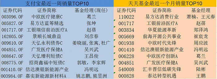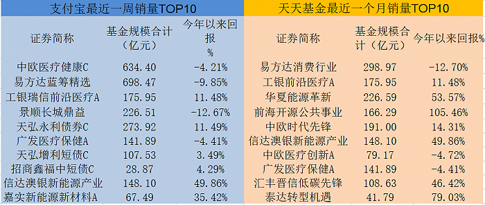 蚂蚁基金和天天基金公布的销量TOP10,或许可以让人一窥究竟。