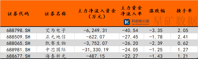 数据|科创板主力资金净流出249股 艾为电子流出率最高