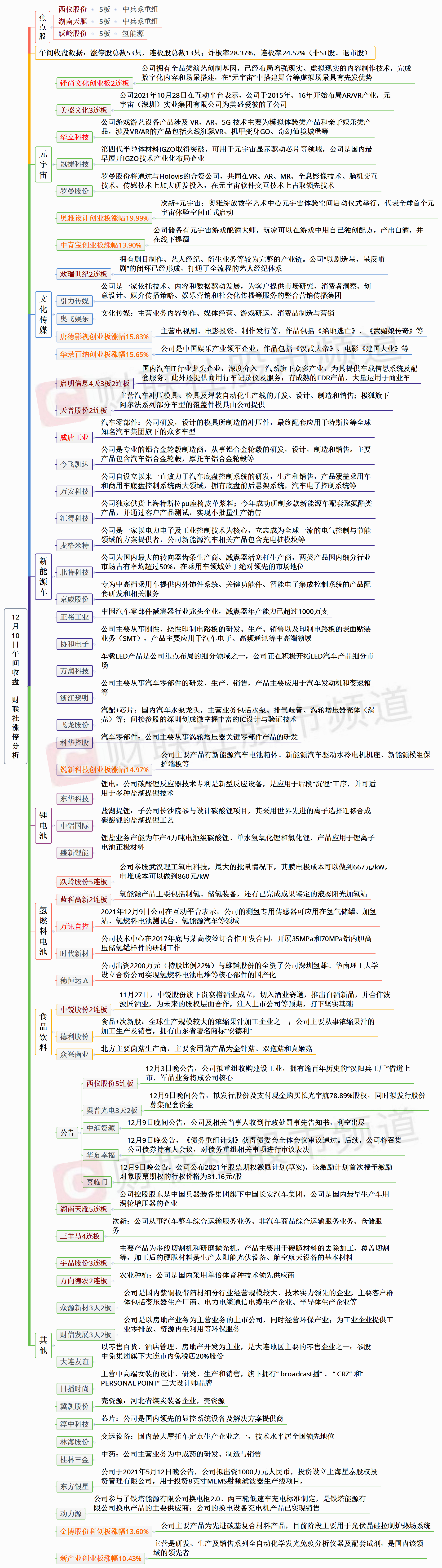 今日午盘两市共53股涨停,连板股总数13只,21股封板未遂,封板率为72%(不含ST股、退市股及未开板新股)。个股方面,氢能源板块跃岭股份5板、蓝科高新2板,中兵系重组概念西仪股份5板、湖南天雁5板,元宇宙概念股锋尚文化创业板2板、美盛文化3板,次新股三羊马4板,新能源车产业链启明信息4天3板、天普股份2板,传媒股欢瑞世纪2板。