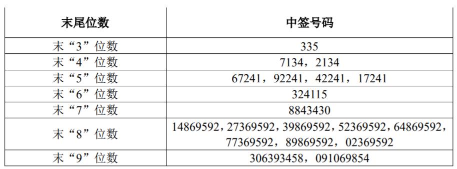 财联社12月23日电,中国移动披露网上中签结果,中签号码共436032个,每个中签号码能认购1000股中国移动A股股票。此外,公司披露战略配售最终结果,大基金二期获配1215.6万股,全国社保基金一零一组合获配1736.7万股,北京京东世纪贸易有限公司获配1042万股。小财注:中国移动的招股书显示,这次上市拟发行9.56亿股票,筹资560亿元,超过了中国电信此前537亿元的募资额,还是A股最近十年以来最大IPO。