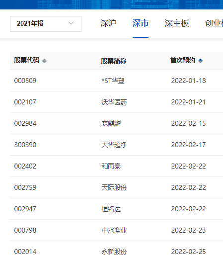 财联社12月31日电,深交所年报预约披露时间表出炉,*ST华塑拔得头筹,将于1月18日率先披露;沃华医药1月21日披露。