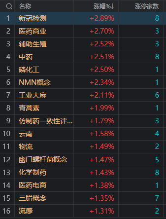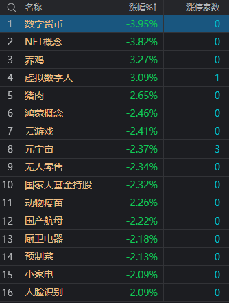 财联社1月11日电,午后指数震荡下跌,创业板指再度大跌超1%。盘面上,新冠检测板块午后异动走强,安旭生物20CM涨停4连板,天瑞仪器、亚辉龙、科美诊断均20CM涨停,奥泰生物涨超10%,九安医疗、千红制药、科华生物涨停。冰雪产业午后异动拉升,冰山冷热涨停,莱茵体育、雪人股份、中粮工科、探路者等跟涨。整体来看午后仍是医药股较为强势。下跌方面,近期活跃的题材板块如数字货币、元宇宙、猪肉等午后持续低迷,此外赛道板块如军工、芯片等午后也持续走低。总体上今日个股跌多涨少,超2700只个股下跌。沪深两市今日成交额10557亿,较上个交易日放量43亿。盘面上,新冠检测、医药商业、磷化工、中药、冰雪产业、三胎概念等板块涨幅前列。数字货币、猪肉、元宇宙、大基金持股、国产航母等板块跌幅居前。截止收盘,沪指跌0.73%,深成指跌1.27%,创业板指跌1.28%。北向资金今日全天净流出40.26亿元,其中沪股通净流出9.33亿,深股通净流出30.94亿。