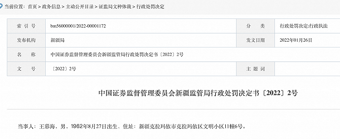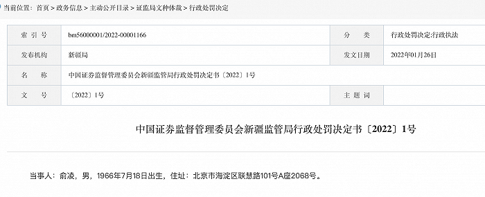那么,这个信息源头ST安控的实际控制人俞凌呢,新疆监管局认为俞凌泄露内幕信息的行为,违反《证券法》第五十三条第一款的规定,构成《证券法》第一百九十一条所述的内幕交易违法行为。根据当事人违法行为的事实、性质、情节与社会危害程度,依据《证券法》第一百九十一条的规定,证监局决定:对俞凌处以50万元的罚款。从立案来看,俞凌是在2021年8月中旬收到的《立案告知书》,内容显示因涉嫌证券市场的内幕交易(泄露内幕信息)而被立案;而到了2021年11月30日,俞凌就已经收到了来自新疆监管局的《行政处罚事先告知书》,不过其中没有公布细节。一直到2022年1月26日,新疆局最终公布行政处罚决定书,也同时公布了上述的细节。