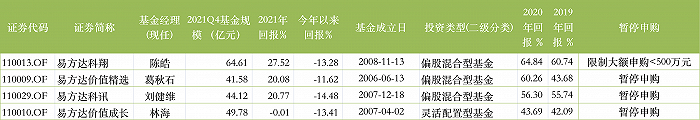 据wind显示,上述四只基金今年以来整体回报均为-10%以上,其中易方达价值成长今年以来回报为-13.41%,去年整体回报为-0.01%。值得注意的是,该只基金1月19日刚刚恢复机构客户申购业务,时隔一个月不到再次“闭门谢客”。