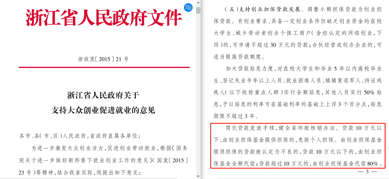 财联社2月17日电,财联社记者从浙江省人社厅相关人士处获悉,浙江省人社厅今日在新闻发布会上提出的“大学生如果创业失败,贷款10万以下的由政府代偿”等就业帮扶政策并非新产物,乃出自2015年《浙江省人民政府关于支持大众创业促进就业的意见》(浙政发[2015]21号),目前略有迭代。前述相关人士表示,“浙江省在双创时代提出‘鼓励创业,宽容失败’,由省失业保险基金成立了一个创业担保基金,如果创业失败,由担保基金来代偿。但这需要经过程序审核,不是说注册一个公司就能拿到钱。2015至今担保基金扶持了一大批的创业者,但没有赔付多少。”(财联社记者刘科、汪斌)