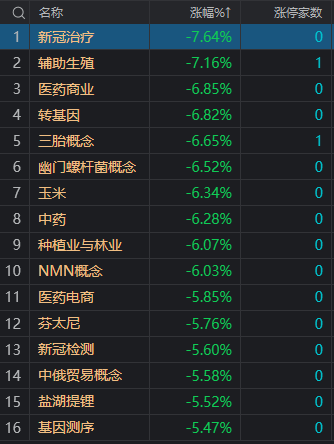 财联社3月8日电,大盘今日继续下挫,三大指数均创年内新低。盘面上,仅东数西算、贵金属、中芯国际概念三个板块上涨,其余板块全部下跌。三胎和医药相关板块今日跌幅居前,达嘉维康、海辰药业20CM跌停,锂电池等赛道股跌幅居前,多只锂矿股跌停。总体上今日个股跌多涨少,两市超4100只个股下跌,近140只个股跌超9%。沪深两市今日成交额11099亿,较上个交易日放量953亿。板块方面,仅东数西算、贵金属、中芯国际概念三板块上涨,新冠治疗、辅助生殖、中药、种植业与林业、盐湖提锂等板块跌幅居前。截止收盘,沪指跌2.35%,深成指跌2.62%,创业板指跌1.8%。北向资金全天净卖出86.99亿元,其中沪股通净卖出31.51亿元,深股通净卖出55.48亿元。