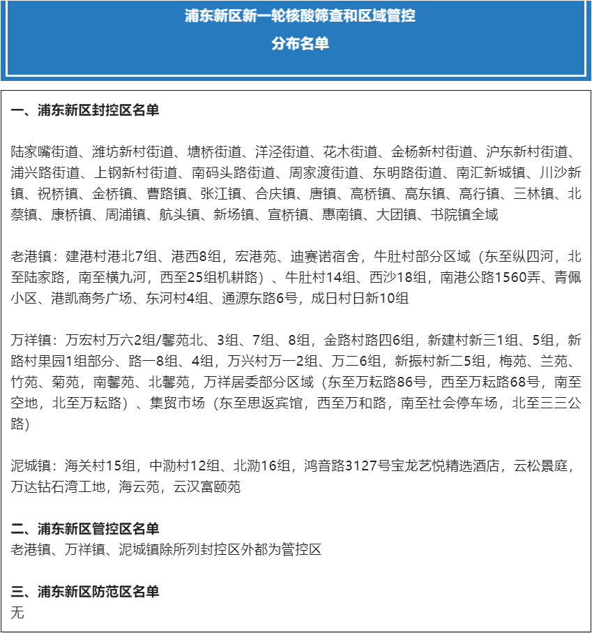上海浦东新区:全区均为封控区或管控区 暂无防范区