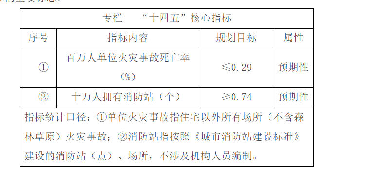 财联社4月14日电,国务院安全生产委员会印发《“十四五”国家消防工作规划》提出,到2025年,消防安全风险防控体系和中国特色消防救援力量体系基本建立,消防治理体系和治理能力现代化取得重大进展,城乡消防安全基础更加稳固,消防工作法治化、社会化水平明显提升,正规化、专业化、职业化的消防救援队伍建设管理体制基本健全,全社会防范火灾事故的能力显著增强,亡人火灾事故明显减少、重特大火灾事故有效遏制,应对处置各类灾害事故的能力大幅提升。到2035年,建立与基本实现现代化相适应的中国特色消防治理体系,消防安全形势根本好转,覆盖城乡的中国特色消防救援力量体系全面构建,防范化解重大安全风险、应对处置“巨灾大难”能力达到新的更高水平,中国消防救援成为彰显中国特色社会主义制度优越性的重要标志。