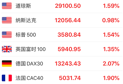 欧洲方面,截至周三(9月2日),英国富时100指数收报5940点,上涨1.35%;德国DAX指数收报13243点,上涨2.07%;法国CAC 40指数收报5031点,上涨1.9%;