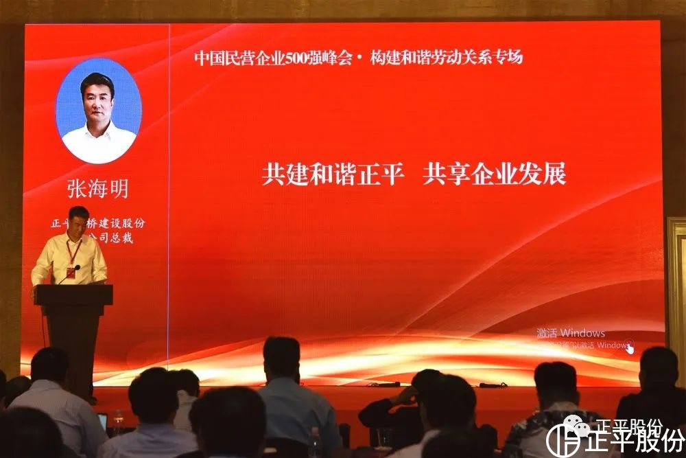 总裁张海明当选青海省建筑业协会副会长、省公路学会副理事长,并受邀在2019中国民营企业500强峰会构建和谐劳动关系专场会上作主旨发言。