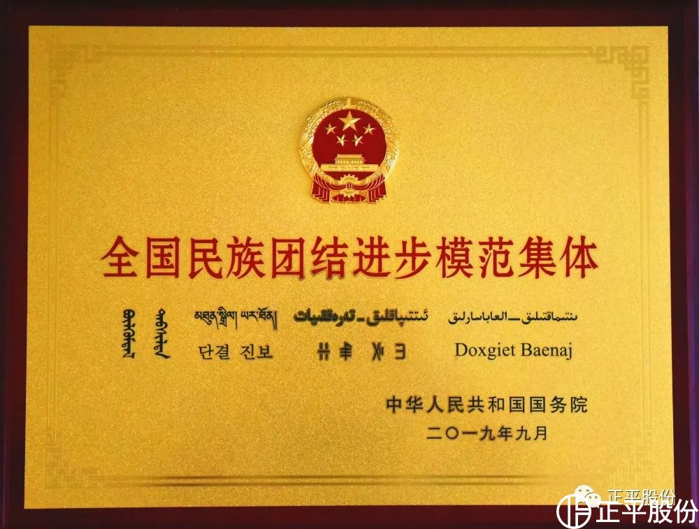 九年来,公司在推动民族团结进步、助力脱贫攻坚、构建和谐社会等方面做了大量工作,也受到了党委政府的高度评价和当地人民群众的欢迎。公司被国务院授予全国民族团结进步模范集体,被青海省委省政府授予脱贫攻坚先进单位,董事长金生光也荣获了光彩事业二十周年先进个人。