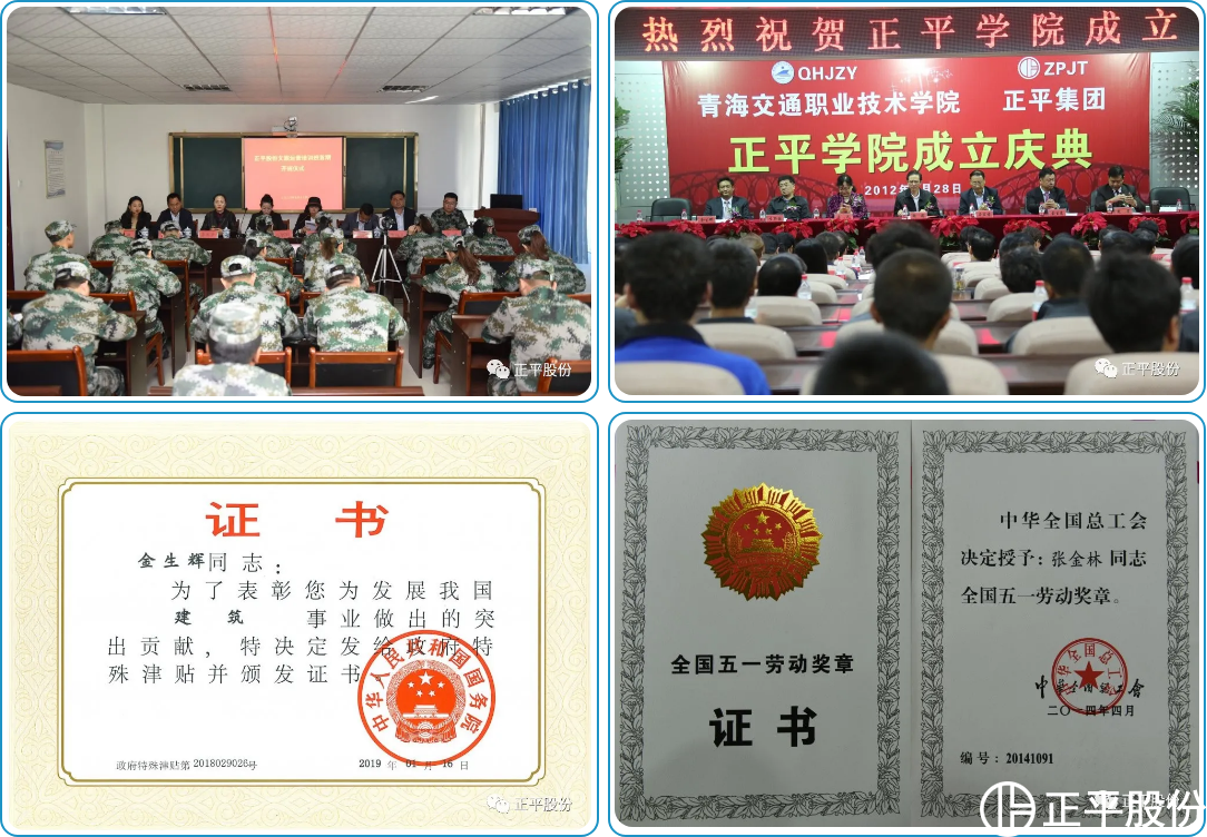 公司成立培训中心,通过半军事化集中培训、以师带徒、进修深造、与职业学院共建“正平学院”等方式,大力开展专业人才培养,同时积极引进高端人才加盟,九年内,共有3人成为享受国务院政府特殊津贴专家,2人被评为国家级评审专家,2人被认定为青海省自然科学与工程技术学科带头人,2人被授予全国五一劳动奖章,4人被授予省级五一劳动奖章。