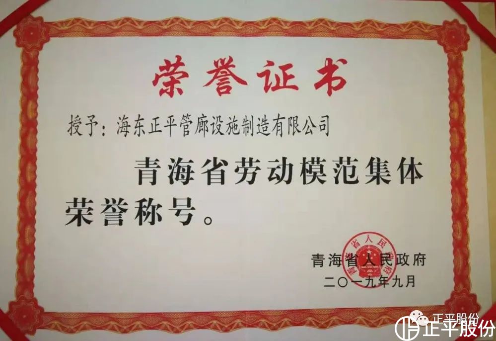 公司1个项目部被授予全国工人先锋号,6个项目部被授予省级工人先锋号,海东正平管廊被青海省政府授予青海省劳动模范集体荣誉称号。