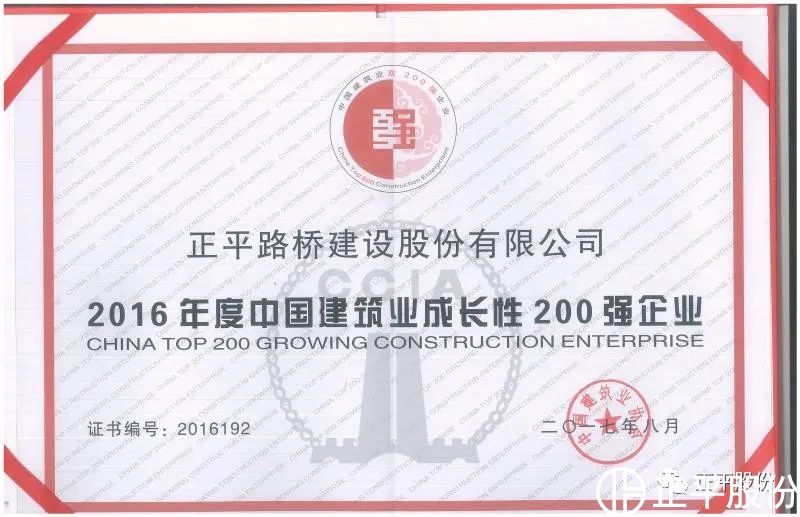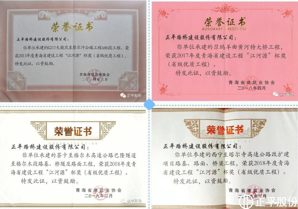 公司先后4次被交通部评为公路施工AA级信用等级,入选了中国建筑业成长性企业200强,连续17年入选青海企业50强,2020年位居青海民营企业50强第三位,连续三届荣获青海省优秀企业,连续五届被评为青海省优势建筑企业,连续11年被评为青海省干线公路施工企业AA级信用等级,连续3次获评青海省建筑施工企业A级信用等级,先后荣获全国就业与社会保障先进民营企业、青海省优秀非公有制企业、青海省政府质量奖提名奖、青海省金融改革创新一等奖、A级纳税人等数十项荣誉。