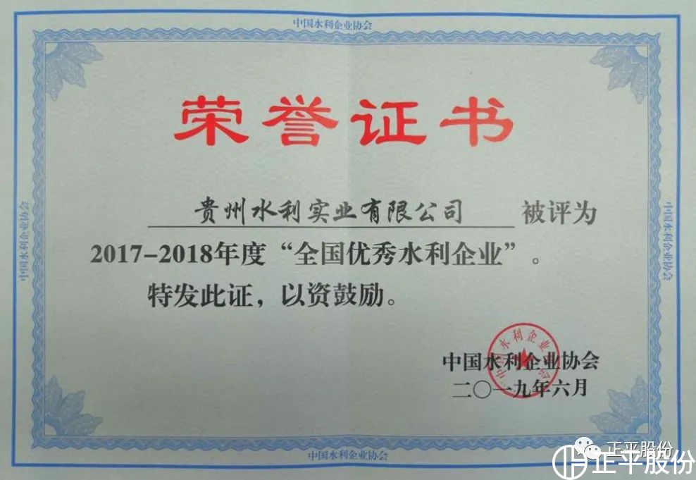 贵州水利实业公司先后2次荣获全国优秀水利企业荣誉,李正光董事长获评全国优秀水利企业家。陕西隆地电力公司被评为陕西省质量守信誉先进单位、AAA级信誉单位等。