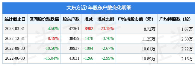 从股价来看,2022年12月31日至2023年3月31日,大东方区间跌幅为4.5%,在此期间股东户数增加8902.0户,增幅为23.15%。