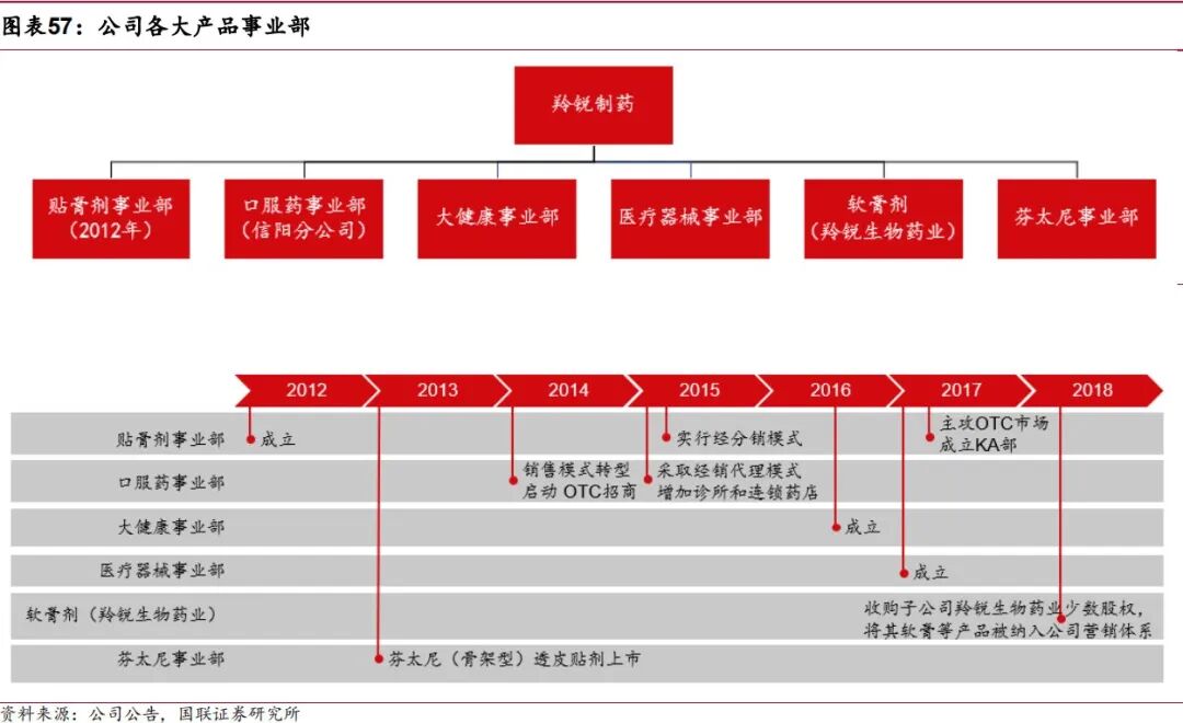 第二次营销改革:2018年,公司整合营销资源,组建了河南羚锐医药有限公司,作为公司及子公司产品统一销售平台。划分OTC、基层医疗和临床三大业务板块进行专业化的销售工作,实现对零售药店、等级医院等不同终端的覆盖。目前公司自营的OTC活动推广队伍已覆盖全国31个省、市、自治区。