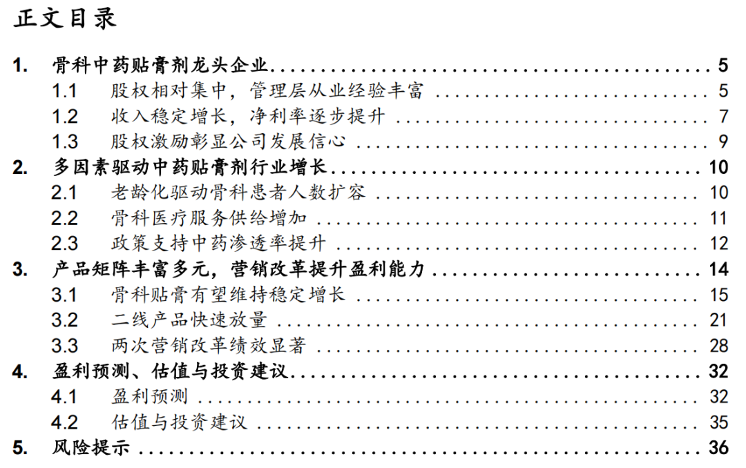 老龄化驱动骨科患者人数扩容,骨科医疗机构和医疗人员数量供给增加,中药渗透率呈现提升趋势,骨科中药贴膏剂行业有望持续增长。公司为行业龙头,市占率逐年提升,产品具备提价空间,量价提升之下,公司骨科贴膏剂有望维持稳定增长。其他二线产品如参芪降糖胶囊、软膏剂、小羚羊儿科产品,芬太尼透皮贴剂预计收入达20%以上增长,有望成为公司第二成长曲线。自2018年公司开启第二轮营销改革以来,净利率持续改善,随着公司实施智能化等举措,盈利能力有望持续提升。