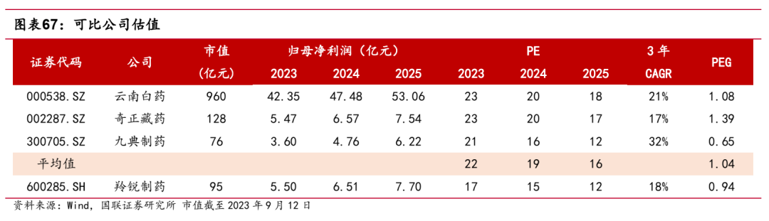 预计2023-2025年公司归母净利润分别为5.50/6.51/7.70亿元。参考3家贴膏剂可比公司2023年平均PE为22x,我们给予公司2023年PE 20x,对应市值110亿元,对应目标价19.41元/股。