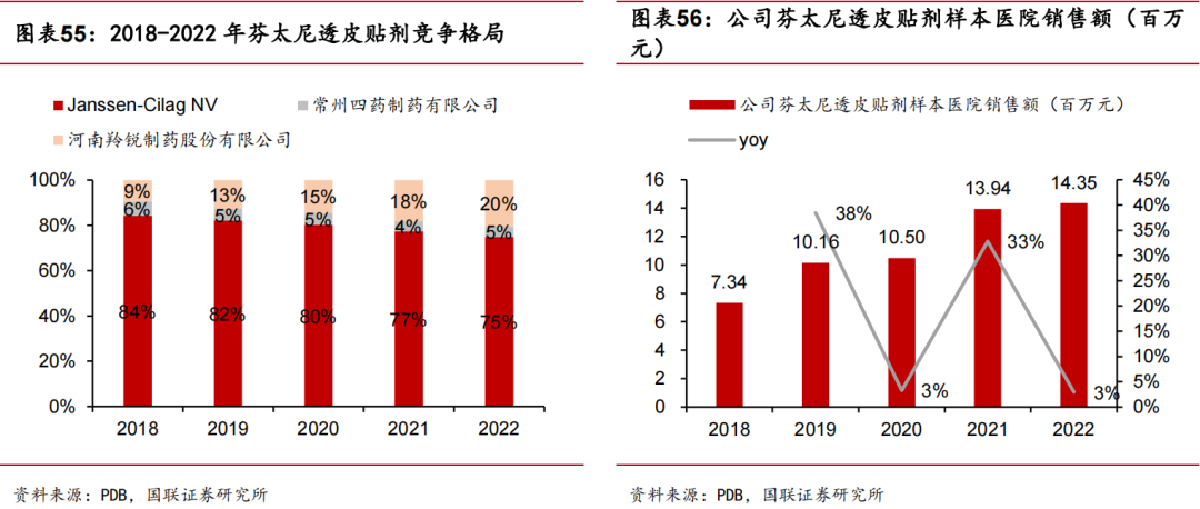 麻醉科类:芬太尼透皮贴剂市占率逐步提升