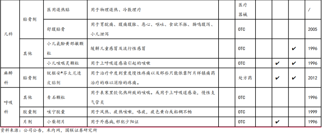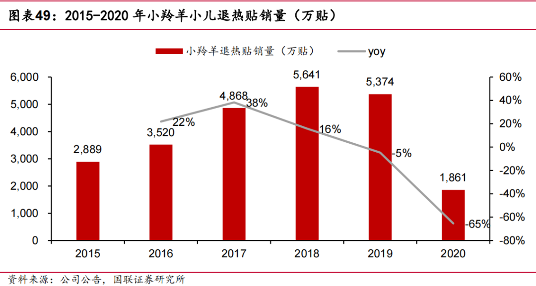公司儿科贴剂产品主要为子品牌“小羚羊”的小儿退热贴以及舒腹贴膏。