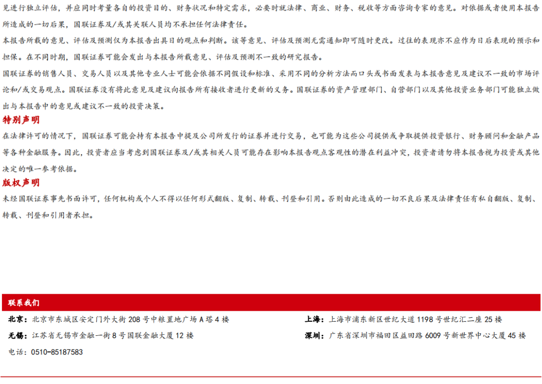 本微信平台所载内容仅供国联证券股份有限公司的客户参考使用。国联证券不会因接收人收到本内容而视其为客户,且由于仅为研究观点的简要表述,客户仍需以研究所发布的完整报告为准。