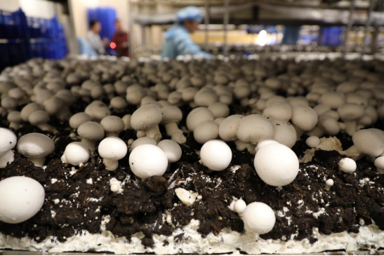 走进众兴菌业的双孢蘑菇种植智能温控厂房,只见宽敞整齐的菌床上,圆润白净双孢蘑菇如雨后春笋般竞相从基料中冒出,工人们有条不紊地采摘已经成熟的双孢蘑菇,随后进行分拣、打包。“我们众兴菌业拥有世界先进的食用菌工厂化生产线,采用标准化方式生产高品质食用菌产品。现在这种立体式的种植模式可以极大利用空间扩大种植面积提高产量,每一个车间一年的产量大概在10万公斤左右,年产值在100多万元,比传统种植效益高出很多。”工厂负责人周恩海介绍。