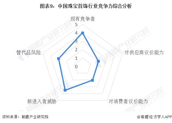从中国珠宝首饰行业的现有竞争者数量较多,集中度较低,产品同质化也较高,整体来看,现有竞争者之间的竞争相对激烈,尤其是中小型企业之间的搏斗分外剧烈。