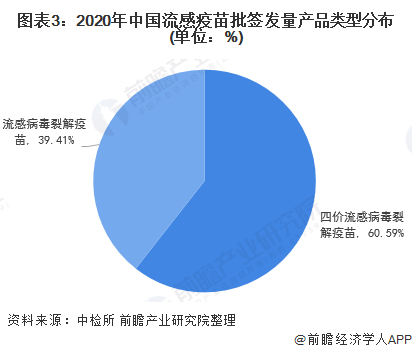 从流感疫苗品种来看,目前我国流感疫苗主要是四价流感病毒疫苗,截至2020年,四价流感病毒疫苗的批签发量为2184.19万支/瓶,占流感疫苗批签发量的比重为60.59%。另外,四价流感病毒裂解疫苗的批签发量为3358.23万支/瓶,占比为39.41%。