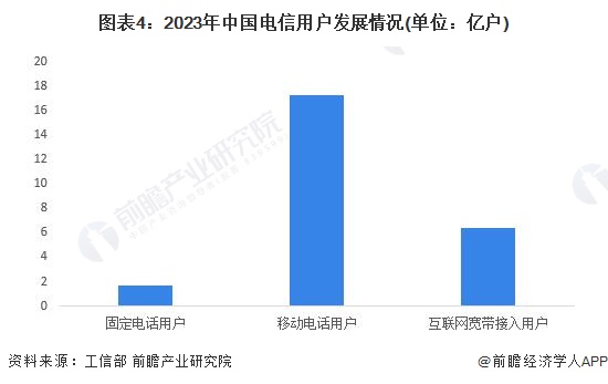 我国国土辽阔,人口规模庞大,对电信服务需求巨大。根据工信部发布的《2023年通信业年度统计数据》,2022年我国固定电话用户数量为1.73亿户,移动电话用户数量为17.27亿户,互联网宽带接入用户数量为6.36亿户。