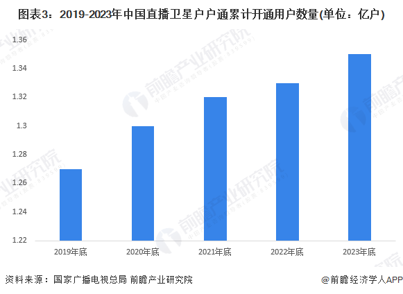 “户户通”卫星直播电视(DTH)服务是广电总局为解决广大农村地区群众长期无法收听收看广播电视的问题,经中宣部批准,由组织实施的直播卫星广播电视新服务。从开通用户数量来看,直播卫星户户通累计开通用户数量逐年增长,2023年达到1.35亿户。