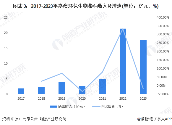 嘉澳环保是规模较大、产品品质严格执行欧盟EN14214标准、且影响力较大的生物柴油生产企业,公司生物柴油产品已经取得全球最大的生物柴油消费区欧盟的ISCC和DDC认证,目前生物柴油业务以外销为主。2016-2022年,公司生物柴油收入高速增长,2022年达到21.44亿元,同比增长超300%。2023年,受市场价格下降影响,公司生物柴油销量虽有增长,但销售收入同比下降17.16%。