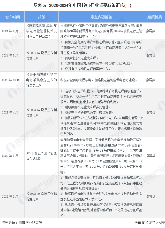 “十四五”时期,国家对核电行业的政策导向主要包括技术合作、安全生产、完善法律法规、数字化转型、国际合作等方面。截至2024年5月,国家层面核电行业政策汇总如下: