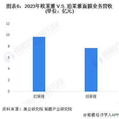 业绩对比:欧莱雅在中国地区面膜业务的营收大约是珀莱雅的1.3倍