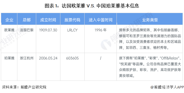 欧莱雅是法国美妆龙头企业,而珀莱雅是中国美妆龙头企业。欧莱雅成立于1909年,于1996年进军中国市场。创始人Eugène Schueller曾就读于巴黎化学研究所,毕业后他进入了法国制药中心,发明了自己的第一个专利:一种新型无毒染发剂,并取名为“欧莱雅”。
